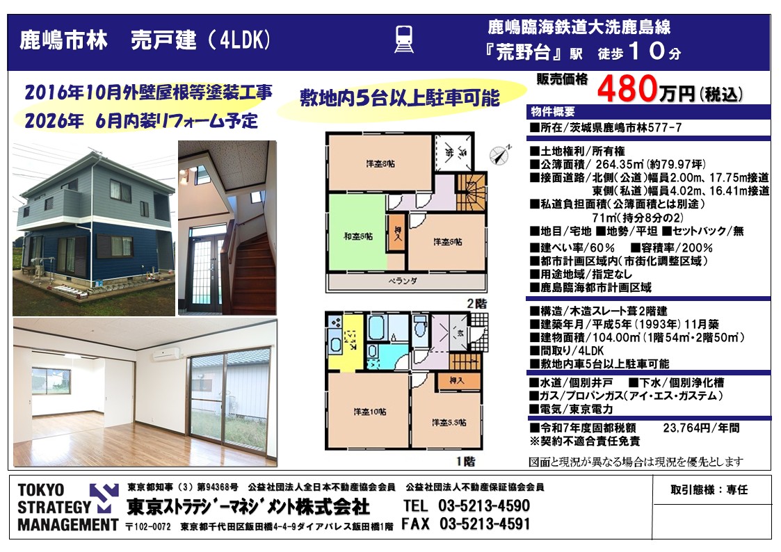| 住所 | 茨城県鹿嶋市大字林 | 土地権利 | 所有権 |