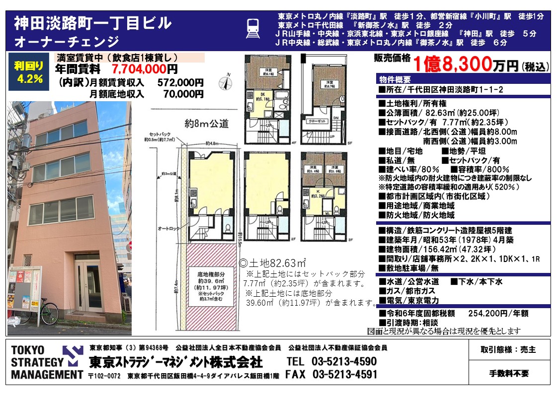 | 物件名 | 神田淡路町1丁目ビル | 専有面積 | 156.42㎡ |